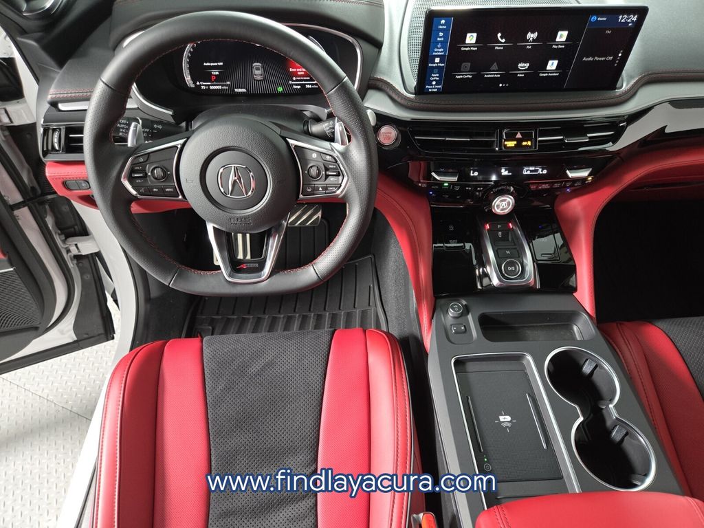 This Acura MDX is equipped with the following features: Nh-883px/Red Leather, 19 Speakers, 3rd row seats: split-bench, 4-Wheel Disc Brakes, ABS brakes, Air Conditioning, Alloy wheels, AM/FM radio, Anti-whiplash front head restraints, Apple CarPlay/Android Auto, Audio memory, Auto High-beam Headlights, Auto tilt-away steering wheel, Auto-dimming Rear-View mirror, Automatic temperature control, Brake assist, Bumpers: body-color, Compass, Delay-off headlights, Driver door bin, Driver vanity mirror, Dual front impact airbags, Dual front side impact airbags, Electronic Stability Control, Emergency communication system: AcuraLink, Exterior Parking Camera Rear, Four wheel independent suspension, Front anti-roll bar, Front Bucket Seats, Front Center Armrest, Front dual zone A/C, Front fog lights, Front reading lights, Fully automatic headlights, Garage door transmitter: HomeLink, Heated and Ventilated Front Sport Seats, Heated door mirrors, Heated front seats, HVAC memory, Illuminated entry, Knee airbag, Lane departure: Lane Keeping Assist System (LKAS) active, Leather steering wheel, Low tire pressure warning, Memory seat, Navigation system: Google built-in (3-Years Unlimited Data Plan for In-Vehicle Apps), Occupant sensing airbag, Outside temperature display, Overhead airbag, Overhead console, Panic alarm, Passenger door bin, Passenger vanity mirror, Perforated Premium Milano Leather and Ultrasuede Seats, Power door mirrors, Power driver seat, Power Liftgate, Power moonroof, Power passenger seat, Power steering, Power windows, Premium audio system: Acura/ELS Studio 3D, Radio data system, Radio: Bang & Olufsen Premium Audio System, Rain sensing wipers, Rear air conditioning, Rear anti-roll bar, Rear reading lights, Rear seat center armrest, Rear window defroster, Rear window wiper, Remote keyless entry, Security system, Speed control, Speed-sensing steering, Speed-Sensitive Wipers, Split folding rear seat, Spoiler, Sport steering wheel, Steering wheel memory, Steering wheel mounted audio controls, Tachometer, Telescoping steering wheel, Tilt steering wheel, Traction control, Trip computer, Turn signal indicator mirrors, Variably intermittent wipers, Ventilated front seats, and Wheels: 20" x 9J Aluminum Alloy.