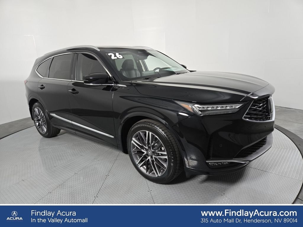 Majestic Black Pearl 2026 Acura MDX Advance Package SH-AWD Nh-893p/Ebony Leather, 19 Speakers, 3rd row seats: split-bench, 4-Wheel Disc Brakes, ABS brakes, Adaptive suspension, Air Conditioning, Alloy wheels, Anti-whiplash front head restraints, Apple CarPlay/Android Auto, Audio memory, Auto High-beam Headlights, Auto tilt-away steering wheel, Auto-dimming Rear-View mirror, Automatic temperature control, Brake assist, Bumpers: body-color, Compass, Delay-off headlights, Driver door bin, Driver vanity mirror, Dual front impact airbags, Dual front side impact airbags, Electronic Stability Control, Emergency communication system: AcuraLink, Exterior Parking Camera Rear, Four wheel independent suspension, Front anti-roll bar, Front Bucket Seats, Front Center Armrest, Front dual zone A/C, Front fog lights, Front reading lights, Fully automatic headlights, Garage door transmitter: HomeLink, Heads-Up Display, Heated door mirrors, Heated front seats, Heated rear seats, Heated steering wheel, HVAC memory, Illuminated entry, Knee airbag, Lane departure: Lane Keeping Assist System (LKAS) active, Leather steering wheel, Low tire pressure warning, Memory seat, Navigation system: Google built-in (3-Years Unlimited Data Plan for In-Vehicle Apps), Occupant sensing airbag, Outside temperature display, Overhead airbag, Overhead console, Panic alarm, Passenger door bin, Passenger vanity mirror, Power door mirrors, Power driver seat, Power Liftgate, Power moonroof, Power passenger seat, Power steering, Power windows, Premium audio system: Acura/ELS Studio 3D, Radio data system, Radio: Bang & Olufsen Premium Audio System, Rain sensing wipers, Rear air conditioning, Rear anti-roll bar, Rear reading lights, Rear seat center armrest, Rear window defroster, Rear window wiper, Remote keyless entry, Security system, Speed control, Speed-sensing steering, Speed-Sensitive Wipers, Split folding rear seat, Spoiler, Steering wheel memory, Steering wheel mounted audio controls, Tachometer, Telescoping steering wheel, Tilt steering wheel, Traction control, Trip computer, Turn signal indicator mirrors, Variably intermittent wipers, Ventilated front seats, Wheels: 20" x 9J Aluminum Alloy, Nh-893p/Ebony Leather.