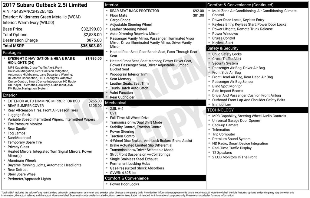 2017 Subaru Outback 2.5i Limited with
